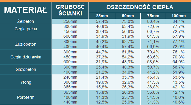 Wyjątkowe walory, jakimi są niewątpliwie wysoka paro przepuszczalność, ok. 70% porowatości, pozwala obniżyć zawartość wilgoci w murze (renowacje i zabytki), czy niepalność A1, czy mrozoodporność pozwalająca zaoszczędzić na ogrzewaniu (np. warstwa tynku 25 mm na żelbeton-budynki z lat 70-tych, daje oszczędności cieplne rzędu 40-50%, pozostałe przykładowe wyliczenia i porównania w tabeli, dlaczego warto), sprawiają, że mamy alternatywę dla stosowania styropianu czy wełny.